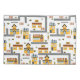 This custom city map themed bedroom or nursery pillow case makes a perfect gift for young boys and girls who love roads, towns, buildings, and vehicles. There is a pattern of a cafe restaurant, pizza parlour, and school in shades of yellow, red, and grey. There are also trees and fences. Add the name of your little kid for a personal touch.