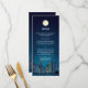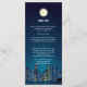 This is a sophisticated menu rack card for those having a special event, private ceremony or elopement in any urban city. It features a city skyline on a starry night with the moon rising above a customised menu. The couple's names stand on the reverse with the event date underneath. Available with matching products.