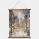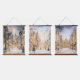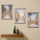 Decorate your house for the winter season with a beautiful set of three hanging panels each with a coordinating scene of a silvery grey and gold scene of a big city snowed in in winter and Christmas trees.  All pictures seem to sparkle.