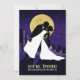 A unique graphic invitation featuring the silhouette of a bride and groom with the city skyline and stars in the background. Stand out with this poster-like illustrative wedding invitation! Wedding information appears on the back of the invitation, while the bride and groom's name and date are featured on the front.