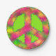 CKC-Peace Symbol-is a digital graphic art design. This design comes from my new Crazy Kids Colours Collection. Strong and bright crazy colours have created layer after layer of crazy fun for children and adults alike. This design in an oversized peace symbol resting on a solid colour green background. The peace symbol is filled with a bokeh hearts pattern and trimmed with sprinkles and polka dots. There are several assorted peace symbol party plates available in this collection. Feel free to add text to personalise your peace symbol plates.