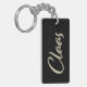 A very beautiful, noble personalized keychain in white gold lettering look on black for Claas.