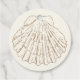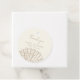 Elegant clamshell baby shower favor tag featuring cream color background and beige color text in elegant calligraphy and typography. Accompanied by a clamshell illustration.