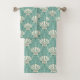 A Beautiful Bath Towel Set With A Pastel Pattern Of Clamshells On Turquoise