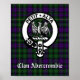 Stylish poster featuring Scottish Clan Abercrombie Crest Badge and text on tartan background.