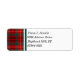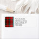 Personalised return address labels bordered with the family tartan of Clan Ainslie, a bright red and forest green traditional Scottish plaid pattern with black, yellow, and white accents.