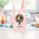 Clan Armstrong crest badge surrounded by a strap and buckle over tartan background. Custom text on both sides.