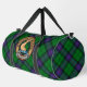 Clan Armstrong crest badge surrounded by a strap and buckle over tartan background. Custom text on both sides.