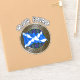 The stick looks amazing. Unfortunately, it would not stick on our suitcase as it was textured. When we found a non-textured (smooth) suitcase, the sticker stuck and looks great. The printing looked awesome.