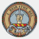 Clan Bell crest badge surrounded by a strap and buckle over tartan background. Custom text.