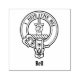 Clan Bell crest badge surrounded by a strap and buckle. Custom text.