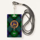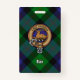 Clan Blair crest badge surrounded by a strap and buckle over tartan background. Custom text.