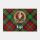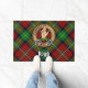 Clan Boyd crest badge surrounded by a strap and buckle over tartan background. Custom text.