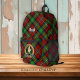Clan Boyd crest badge surrounded by a strap and buckle over tartan background. Custom text.