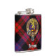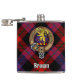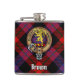 Clan Brown crest badge surrounded by a strap and buckle over tartan. Custom text.