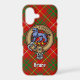 Clan Bruce crest badge surrounded by a strap and buckle over tartan background. Custom text.