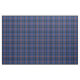 Fabric in the family tartan for Clan Bryson, a traditional Scottish plaid pattern from 1988 in dark blue, royal blue, and green, with gray and bright red accents. Pattern repeats every 4". Special order smaller or larger scale via https://plaidwerx.com/contact.htm