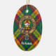 Buchanan crest badge surrounded by a strap and buckle over clan tartan background. Custom text on both sides.