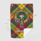 Buchanan crest badge surrounded by a strap and buckle over clan tartan background. Custom text.