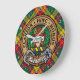 Clan Buchanan crest badge surrounded by a strap and buckle over tartan background. Custom text.