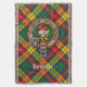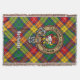 Clan Buchanan crest badge surrounded by a strap and buckle over tartan background. Custom text.