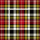 Fabric with the Clan Buchanan dress tartan, a traditional Scottish plaid pattern in bright red and yellow, black, and creamy white. Also known as Old Buchanan Dress. Pattern repeats every 4". Special order larger or smaller scale via https://plaidwerx.com/contact.htm