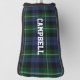 Customised plaid putter golf club cover done in the classic green, blue, black, and white clan Campbell tartan plaid pattern. Bold white text reads Campbell and can be personalised to read what you want. Great gift idea. Chose either driver cover or putter cover.