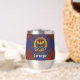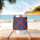 Clan Carnegie crest badge surrounded by a strap and buckle over tartan background. Custom text on both sides.