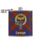 Clan Carnegie crest badge surrounded by a strap and buckle over tartan. Custom text.