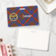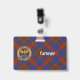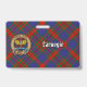 Clan Carnegie crest badge surrounded by a strap and buckle over tartan background. Custom text on both sides.