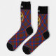 Clan Carnegie crest badge surrounded by a strap and buckle over tartan background. Custom top stripe colour. Custom text on each sock.