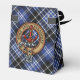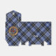 Clan Clark crest badge surrounded by a strap and buckle over tartan background. Custom text and monogram.