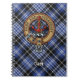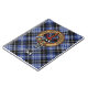 Clan Clark crest badge surrounded by a strap and buckle over tartan background. Custom text.