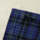Stylish beach towel done in the classic blue and black Scottish clan Clark tartan plaid pattern. Personalise the large white text, in the middle, to suit your needs.