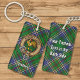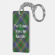 Clan Cockburn crest badge surrounded by a strap and buckle over tartan background. Custom text on both sides.