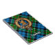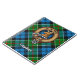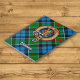 Clan Colquhoun crest badge surrounded by a strap and buckle over tartan background. Custom text.