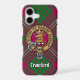Clan Crawford crest badge surrounded by a strap and buckle over tartan background. Custom text.