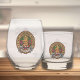 Clan Crawford crest badge surrounded by a strap and buckle over tartan background. Custom text on both sides.