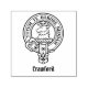 Clan Crawford crest badge surrounded by a strap and buckle. Custom text.