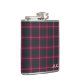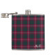 Monogrammed flask with the tartan for Clan Crawford. Maroon and hunter green Scottish plaid pattern from around 1739, with white accents.