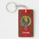 Clan Cumming crest badge surrounded by a strap and buckle over tartan background. Custom text on both sides.