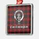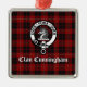Stylish Christmas ornament features Scottish Clan Cunningham crest badge and customisable text on tartan background
