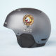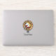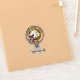 Clan Cunningham crest badge surrounded by a strap and buckle over tartan background. Custom text.