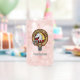 Clan Cunningham crest badge surrounded by a strap and buckle over tartan background. Custom text on both sides.