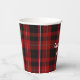 Plaid paper cup with the traditional Scottish black and red clan Cunningham tartan plaid pattern. Personalize the custom white text to suit your needs. Matching napkins and paper plates are available.