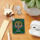Clan Davidson crest badge surrounded by a strap and buckle over tartan background. Custom text on both sides.