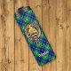 Clan Douglas crest badge surrounded by a strap and buckle over tartan background. Custom text.