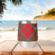 Clan Drummond crest badge surrounded by a strap and buckle over tartan background. Custom text on both sides.