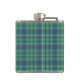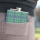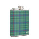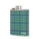 Monogrammed flask with the ancient tartan for Clan Duncan. Light green, blue and red Scottish plaid pattern from 1880, with black and white accents.
