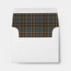 Envelopes with plaid liner feature the Duncan family reproduction clan tartan pattern. Traditional vintage Scottish plaid from 1880 in muted brown, steel blue, and grey, with black, white and red accents. Matching personalised stationery and return address labels available.